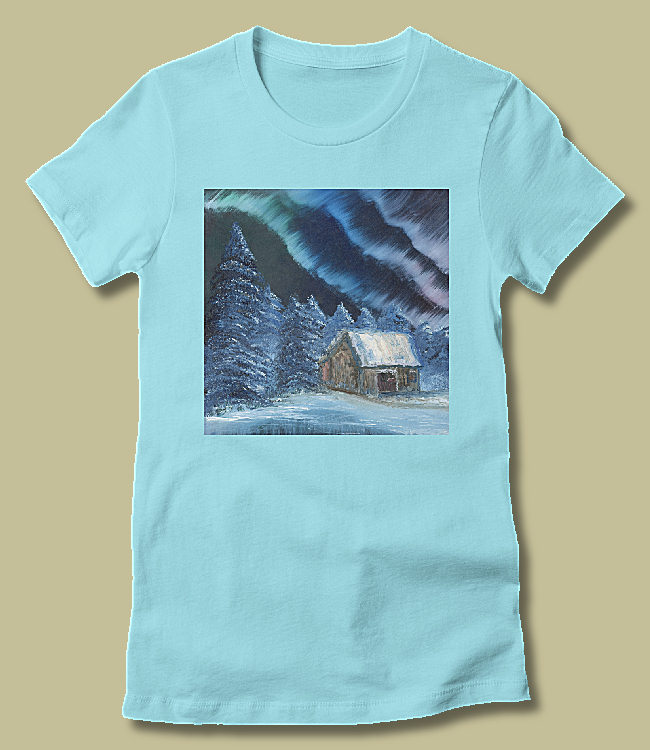 This brilliant celestial light show is named after Aurora, the Greek Goddess of Dawn. Aurora dances across the sky, illuminating this frosty Northern Night, showering a cozy cabin with visions of awe and wonder.