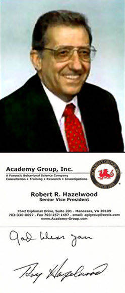 I had originally been introduced to Supervisory Special Agent Robert "Roy" Hazelwood when I called the hotline at the National Center for the Analysis of Violent Crime headquartered at the FBI Academy, in Quantico, Virginia, asking for assistance in dealing with a serial killer.